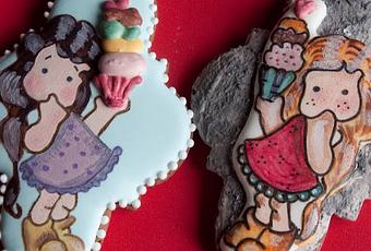 En esta entrada os voy a explicar como dibujar a estas muñequitas sobre galletas. Tenemos dos galletas con fondos distintos con dos dibujos de Magnolia coloreados diferentes