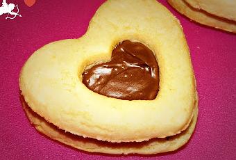 3. Estiramos la masa y la refrigeramos durante 30 minutos. 4. Cortamos las galletas con el cortador que más nos guste, intercalando, unas con un agujetito en el centro y otras sin. 5. Refrgeramos las galletas durante una hora. 6. Horneamos durante 10-15min, a 180º, o hasta que estén doraditas. 7. Dejamos enfriar en una rejilla para luego rellenarlas con la Nutella, cómo sí de un Sándwich se tratase.8. ¡A disfrutar! Besos mil y hasta la próxima receta familia !! Mimamaysucocina.
