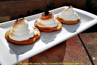 - 4 huevos- una pizca de sal- 250 gr de azúcar glas- galletas mariñeiras de aceite de oliva, daveigaElaboración:En primer lugar precalentaremos el horno a 180 grados y reservaremos.Separamos las claras de las yemas y las colocamos en un bol, es muy importante separarlas muy bien para que no caiga nada de yema.Ahora le ponemos la pizca de sal y comenzamos a batir, si tenéis batidora con varillas mejor si no con varilla manual y un poco de paciencia.