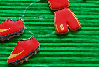 El campo de fútbol es este mantel individual del Ikea tuneado y los cortadores vienen en un pack, de la marca Städter.