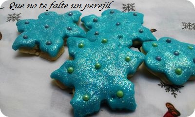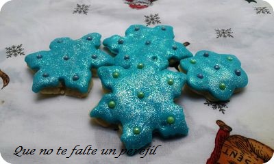 MODO DE HACERLOUna vez hechas todas las galletas y ya frías, empezaremos a decorarlas.amasamos con las manos el bloque de fondat, formamos una bola. Espolvoreamos un poco de maicena en la mesa de trabajo y estendemos con un rodillo que no sea de madera. Cortamos con el corta pastas elegido. Con la yema del dedo o un pincel, echa por encima de las galletas un poco de pegamento para fondant. Pon el fondant encima, decora con el brillo o purpurina y pon las perlas de azúcar.Si las quieres poner en el árbol , envuélvelas en papel de celofan y ata con una cinta o lazo, así podrás colgarlas fácilmente.Si no quieres omprar el pegamento de fondant, puedes sustituirlo por un poco e agua con azúcar. Os aconsejo no mojar demasiado ni la galleta ni el fondat. Sólo un poco con la yema de los dedos.