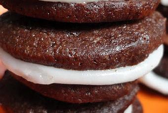Las galletas son, básicamente, galletas de chocolate (mejor dicho, galletas de cacao) con mantequilla y harina. La crema de relleno se basa en queso cremoso y azúcar glass.