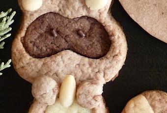 En un bol ponemos la mantequilla que deberá estar a punto pomada con el azúcar, mezclamos e integramos, añadimos las yemas, batimos, poco a poco le incorporamos la harina junto con la sal y el anís. Amasamos un poco y formamos una bola, guardamos en una bolsa de plástico en la nevera unas 2 horas.Precalentar el horno a 180ºCParte de la masa le ponemos cacao en polvo en diferente cantidad, con el fin de obtener varios tonos de marrón. Estiramos la masa entre dos hojas de papel vegetal y ayudándonos de los cortadores hacemos los diferentes ositos, le colocamos la semilla de calabaza a unos y un piñón a otros. Le ponemos fideos de chocolate para formar los ojos y el ombligo.Colocar sobre una bandeja de horno con papel vegetal, pintamos con el colorante.Horneamos unos 10-12 minutos.Dejamos enfriar sobre una rejilla.