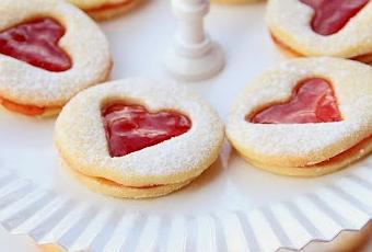 - Azúcar glas- Mermelada de fresaUna vez frías rellenamos la tapa que no tiene el corazón en medio con mermelada de fresa y tapamos con la del corazón (con cuidado de que no rompa)