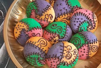 Estas galletitas de mantequilla reflejan los trozos de tela del vestido de Sally cosidos y dibujados con chocolate. Son de textura muy suave e ideales para una merienda de Halloween gracias a su temática y colorido. Si las regalas o las llevas a una fiesta, causarán sensación ya que llaman poderosamente la atención🎃 Hace tiempo llevé un brownie decorado con algunos personajes de la película que creó sensación. La receta de estas galletas está inspirada en la de @burpee_vet.