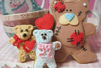 También preparé unos cuantos corazones de fondant y de galletas, para que cada osito tuviera un corazón en la mano