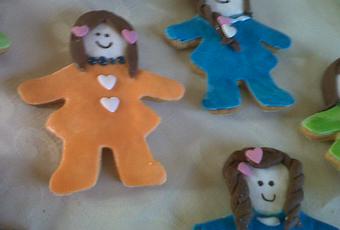 Aunque mi cuñada me dio una idea para hacer el pelo: comprar uno de los utensilios para modelar la plastilina que realmente es parecido a un prensador de ajos. Como soy muy exigente, no paré hasta hacerle otras galletas que se vieran más bonitas. Y le regalé estas flores. Más fáciles pero eso sí, daba pena comerlas pues parecían un ramillete de flores de verdad. A que sí?