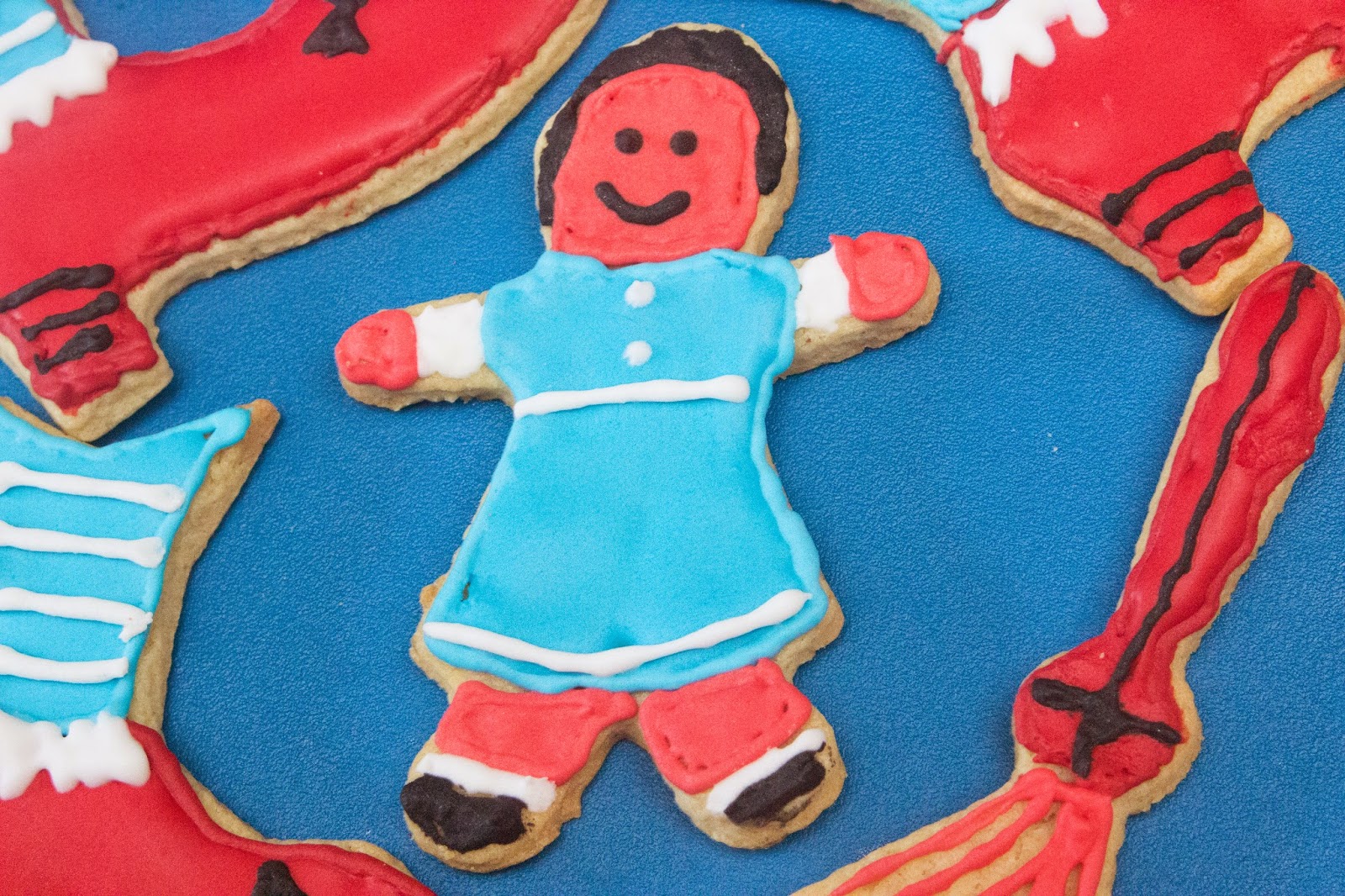 Hacer las galletas fue fácil, aunque me quedaron un poquito con grumillos y se debe a que puse la mantequilla demasiado fría, para la próxima vez no me pasa. Luego cuando empezé a preparar la glasa todo empezó a complicarse. Por un lado, mezclar todo y decidir cual era la consistencia ideal para la glasa, me volvió loca. Al final decidí como quedarían pero para la próxima las haré un poco más líquidas. Luego viene el momento de echar el colorante que, no se como acabé pringándome todas las manos y pasé dos días con las manos rojas y negras. Y es que compré dos mangas pasteleras reutilizables maluchas y al apretar un poco estallaron por un lado, dejándome perdida. Al final me decidí por usar unas de usar y tirar y mi vida se solucionó bastante. Luego le pillé el truco y ya fui pintando pero vamos, que nadie me quita las 6 horas de pintarlas que usé.