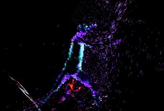 “Cosmic microwave background live performance” es una obra donde se proyectan los movimientos de los cuerpos como partículas lumínicas en una pantalla gigante.