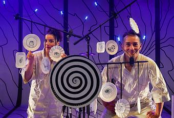 Usando elásticos, linternas, canciones e incógnitas, dos viajeros se harán preguntas existenciales al ritmo de música en vivo e instrumentos que van desde guitarras eléctricas, hasta un estilófono y un theremin.
