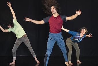 Tres performers, cuyos cuerpos oscilan entre distintos puntos del espacio tanto dentro de ellos mismos como en la habitación que ocupan, llevan a escena esta idea de distancia y cercanía.