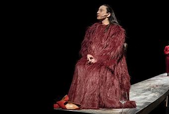 En escena está también la productora del montaje, que acompaña desde el fondo sobre una pasarela que deja ver con ironía el mundo del teatro, riéndose de las cosas que suceden entre los actores, sus productores y directores.