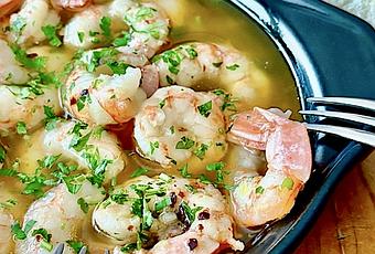 Un plato tradicional español que nace en el recetario de Madrid, así como las Patatas bravas, o el Bocadillo de calamares son reconocidos representantes de la cocina madrileña. Estas gambas son muy populares para comerse como una tapa o una ración de aperitivo y que podrás encontrarlo en la gran mayoría de bares tradicionales de la ciudad. 4 o 5 ingredientes, no más, es necesario para hacer esta fácil, pero maravillosa receta. No te dejes engañar por los tiempos de cocción, es muy importante no sobre cocinar las gambas, sino te quedarán duros o gomosos.