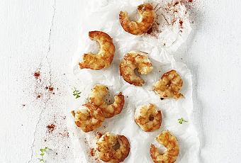 Ingredientes:- 10 gambones o langostinos grandes.- 3 cucharaditas de miel.- 1/2 cucharadita de pimentón dulce (también puedes añadirle un poco de pimentón picante si te gusta darle un poco más de power al langostino o gambón).- Sal.- Aceite de oliva.
