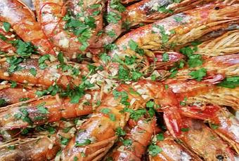 Repartimos el brandy por todos los gambones, y salamos un poco más, si usamos sal en escamas mas ricos salen, llevamos al horno otros 5 minutos más.