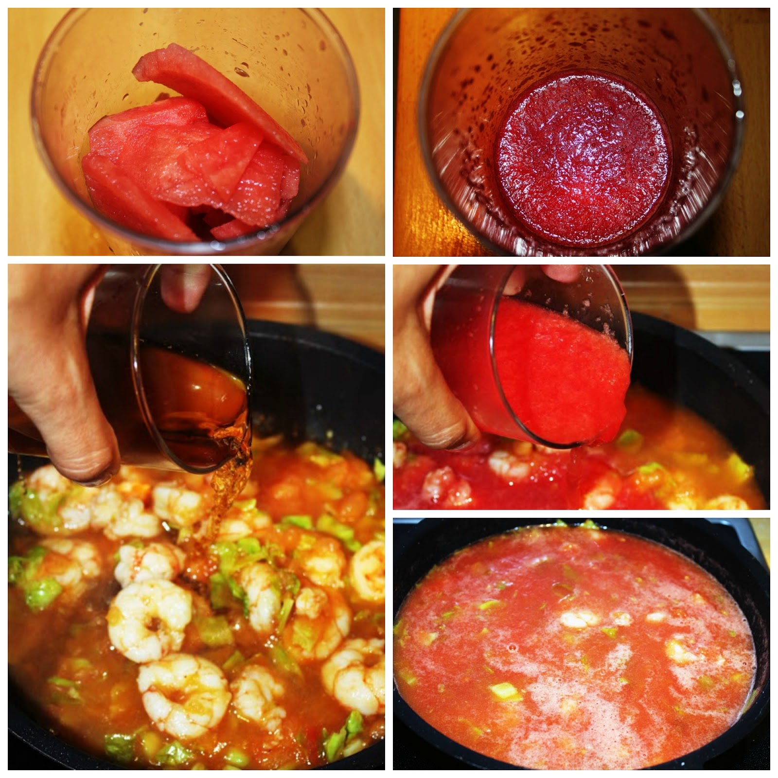 la sandía con la batidora. Añadimos el vino y la sandía al