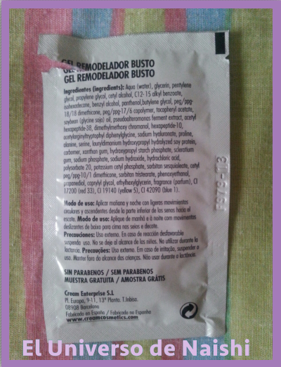 Esta muestra también nos la dieron en el desayuno blogger, de la marca Crea-m, es especifica para el busto, me dio para 3 aplicaciones ya que no me gusta abusar de estos productos, el olor es lo que notaba raro pero se absorbía bien y no me duraba mucho el olor, al ser una muestra no se de su eficacia y no creo que compre el tamaño normal porque no uso estos productos, es más...apenas uso crema corporal.