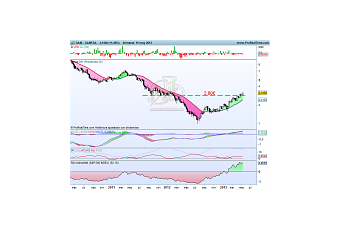 En cuanto a los indicadores, el RSc Mansfield nos muestra la gran fuerza que presenta este valor con respecto al S&P500 que acaba de superar máximos. Por lo que respecta a divergencias decir que no se aprecia ninguna en estos momentos, ni alcista ni bajistas. Y lo único a lo que podríamos ponerle un pero es el volumen que últimamente no es muy elevado. Por otro lado la mm de 30 sesiones se mantiene alcista, y mientras siga así no hay de que preocuparse.