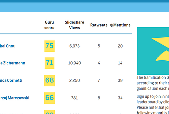 Gamification Gurus. Tabla gamificada de Gurús de la gamificación que te permite estar al día en gamificación y seguir a los principales referentes. La tabla de posiciones Gamification Gurús clasifica los jugadores según su impacto digital en todo el tema de la gamification cada mes.