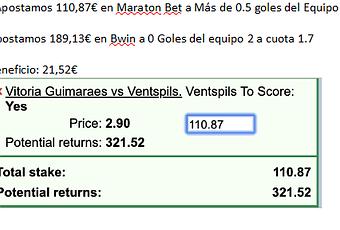 Como puedes observar, tanto si el equipo 2 marca como si no… el beneficio que recibirás es de 21,52€. Lo que pierdes en una casa de apuestas lo ganas en la otra.