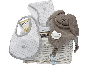 Contenido de la Cesta de Nacimiento:- Un Biberón de Avent Personalizado de 125 ml.