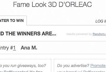 Ahora si!...Mediante sorteo realizado por Rafflecopter, se determina que la ganadora de la máscara de pestañas Fame 3D de D'orleac es...