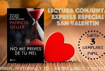 Lo prometido es deuda, así que arrancamos la semana con el listado de participantes del Sorteo Express Especial San Valentín de la novela No me prives de tu piel de Patricia Geller.Agradecer a la Editorial Esencia y a la autora Patricia Geller por cedernos los ejemplares para realizar el sorteo.