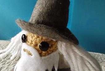 Hola pecos@s!!! la vuelta del verano y unos dias de relax sientan de lujo. Tanto es así que las pilas se han cargado a tope y hoy llega Gandalfito el gris, un muñequito hecho con mucho cariñoya que en un 75% esta hecho de fieltro. Barba, traje y sombrero. El resto...lana. Es por tanto que aqui trabajé mas con la aguja de coser que con el ganchillo, pero bueno, me gusta mucho el resultado. Tengo rescatado algun palito para su vara, y estoy con su pipa, ya os lo enseñaré del todo acabado en unos dias.