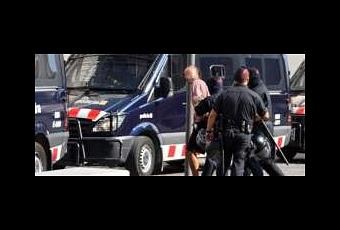 Los Mossos se llevan a un indignado detenido en la Ciutat de la In-Justícia
