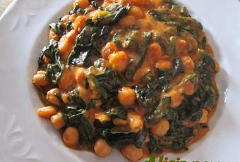 En el aceite que apartamos, rehogamos las espinacas un par de minutos, después añadimos los garbanzos y mezclamos.
