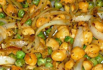 Esta es otra sabrosa receta de Rosa Jiménez, una excelente compañera y cocinera.Ingredientes: ♦ Garbanzos cocidos.♦ Guisantes.♦ Un trozo de cebolla.♦ Orégano.♦ Sal.♦ Aceite de oliva.♦ Pimentón dulce.♦ Pimienta blanca.♦ Agua.♦ Vino blanco.Preparación: 1.- Se pone en una sartén un poco de aceite y se sofríe un poco la cebolla cortada en julianas (a tiras). 2.- Se le añaden un puñado de garbanzos cocidos, un puñado de guisantes, un poco de orégano, un poco de sal, un chorrito de vino blanco, una pizca de pimienta blanca y una pizca de pimentón dulce. Se remueve dos o tres minutos. 3.- Se le añade un poco de agua y se tapa. 4.- Se va mirando y removiendo. Cuando esté hecho y se haya secado el caldito se aparta.¡Y a disfrutarlos!