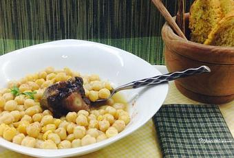 Si usáis los garbanzos crudos, hay que ponerlos a remojo unas 12 horas antes, luego los metemos a la olla a fuego alto cubriéndoles con el caldo y si es necesario añadimos agua y sazonamos.