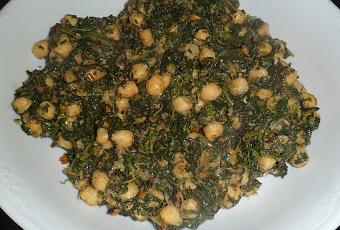 Ingredientes:400g de garbanzos cocidosacelgas3 rebanadas de pan frito50g de almendras1 ajo1 cucharada de aceitevinagrepimentón dulcesal Ponemos las acelgas a hervir en agua con una poca de sal, En una sartén freímos las rebanadas de pan. las almendras y el ajo pelado. En un mortero majamos el pan con las almendras. un chorreon de aceite de oliva, el ajo y el pimentón. Agregar un chorreon de vinagre para facilitar el majado. Una vez cocidas y escurridas las acelgas, las rehogamos en la sartén, agregando la mezcla que hemos preparado en el mortero y los garbanzos cocidos y escurridos de agua. Seguir rehogando en la sartén unos minutos mas.