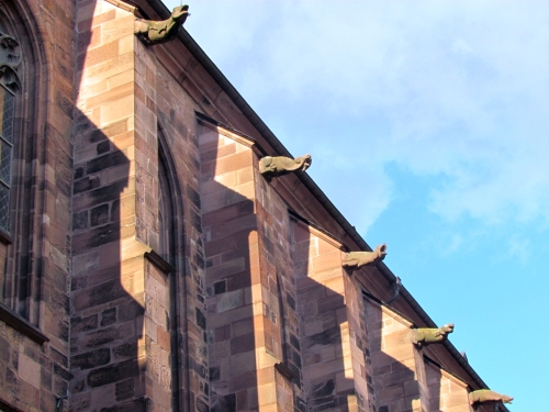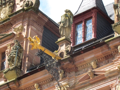 En catedrales y edificios europeos, suelen verse figuras grotescas en las paredes. En general son de piedra, pero hay algunas variantes de metal, algunas parecen salir de las paredes y otras están como adheridas a las mismas.Castillo en Heidelberg
