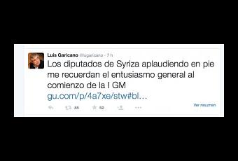 Me choca ese comentario por lo parcial que resulta. ¿Los aplausos de esos diputados le recuerdan a Luis Garicano el comienzo de la I Guerra Mundial y la insistencia alemana y de la Troika en pedir a Grecia que dé lo que no puede dar no le recuerda la insistencia de los aliados en pedir reparaciones a Alemania que dio lugar al nazismo y a la Segunda Guerra Mundial?