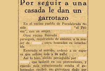 Curiosa noticia aparecida el 11 de febrero de 1926 en el periódico La Nación en la que un vecino de Fuenlabrada apodado "El Prisas" le propinó un garrotazo a otro vecino que iba detrás de su mujer, y que le produjo heridas graves.