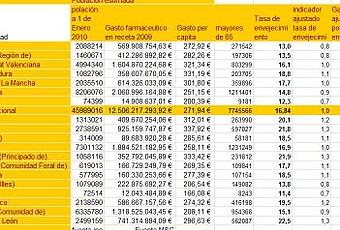Si dividimos Gasto farmacéutico en receta 2009 entre la población de los distintos territorios a a 1 de Enero 2010 obtenemos el Gasto per cápita.