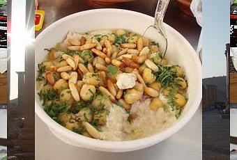 Empezaré por hablar del “humus”, el cual muchos de vosotros conoceréis, pero que considero que se merece un papel destacado. Este plato típico en Líbano, Siria y Jordania, amén de otros países, es una pasta compuesta por garbanzos cocidos, tahina (pasta de sésamo) y aceite de oliva. La verdad es que es algo sencillo pero está muy bueno. Puede servirse sólo, con carne, con piñones o para acompañar otros platos. A veces también lo sirven con algo de perejil y ajo picado y, por supuesto, se come untándolo con pan, un elemento imprescindible en la cocina árabe, ya que no se come con cubiertos, sino con las manos usando el pan como utensilio.