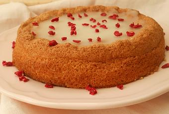 La receta la tomé prestada de aquí y reduje las cantidades para hacer la tarta en un molde de 18 cm. de diámetro.