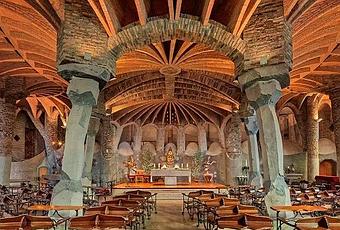 Gaudí tenía que construir la iglesia de la Colònia Güell, a Santa Coloma de Cervelló. La muerte del empresario Eusebi Güell y el conflicto familiar que origino su herencia, hicieron que los hijos tomaran la decisión de no continuar sufragando los gastos de Gaudí y por ende parar las obras de la cripta (1908-1914), Patrimonio de la Humanidad. Cada columna de la cripta es diferente, y el conjunto funciona com un reloj de sol por la luz que se filtra a través de los vitrales en forma de piña. El mobiliario también es de Gaudí. Los ventanales y vitrales son funcionales y no solo decorativos.