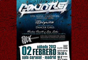 Como parte de la gira STUBBURNED ALIVE 2012-2013, presentando su último album STUBBURN con un gran éxito, GAUNTLET se presenta en Madrid el sábado 2 de febrero en la SALA CARACOL acompañado de DELYRIÜM que también presentará su nuevo disco “Quarens Utopiam”.