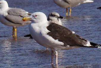 Y también se ha visto algún gavión de primer invierno, como éste, en el que destaca el contraste entre las escapulares totalmente mudadas y las plumas coberteras juveniles y bastante gastadas.
