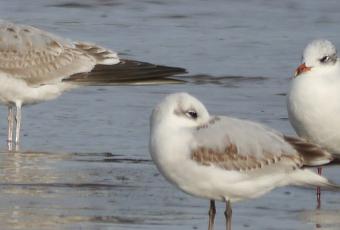 La cana es una gaviota de tamaño intermedio, un poco mayor que la cabecinegra como se apreciaba en la anterior foto, o la reidora, y más pequeña que sus compañeras de género, las gaviotas sombría y patiamarilla. Con ese ojillo negro y redondo, sin marcas, presenta un inconfundible aspecto de "buenaza".