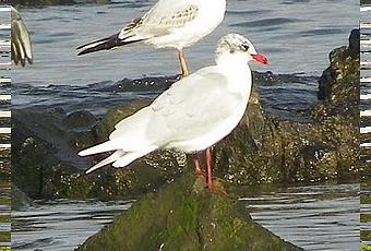 Y entre las de primer invierno ahí va un ejemplar fotografiado junto a una gaviota cana, también de primer invierno. La cabecinegra es la de la derecha.