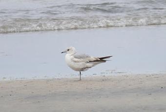 El tercer ejemplar de gavión era un ave más frecuente en esta época, un primer invierno o segundo año calendario. Estas gaviotas inmaduras tienen mucha menos prisa en retornar a sus áreas de cría que los adultos, algunas de ellas incluso no lo harán y se quedarán a pasar el verano entre nosotros.