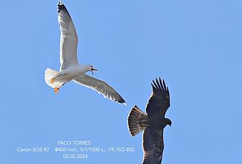 - Águila calzada (Laus michahellis) y Gaviota patiamarilla (Hieraaetus pennatus)