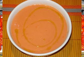Pasar el resultado por un colador fino o por el chino. Añadir el aceite de oliva, el vinagre y la mayonesa. Salpimentar a gusto. Mezclar todo bien y enfriar en la nevera