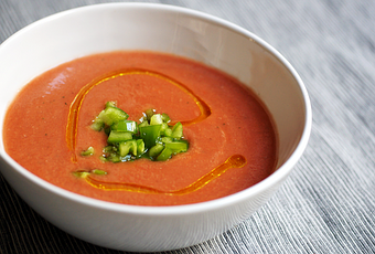 Ingredientes para 4 personas:1 kilo de tomates para gazpacho (tipo pera, por ejemplo)1 pimiento verde1 pepino grande1 cebolla1 dientes de ajo1 taza (de cafe) de aceite de olivavinagre al gustosal