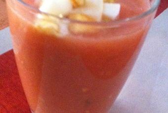 - Sirve el gazpacho bien frío acompañado del huevo picado y un chorro de aceite de oliva en crudo.