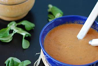 El resultado fue impresionante: me encantó el aroma que desprendía, pura albahaca, pero luego en boca, que pensé que iba a ser muy fuerte (por el aroma) fue una experiencia fresca, suave y muy rica, aunque un pelín fuerte de vinagre, tal vez la próxima vez le ponga un poco menos o un vinagre más suave. De lo que estoy segura es de que lo repetiré y de que se merece un sitio aquí: es rápido, barato, y muy rico. INGREDIENTES 1 k de tomates muy maduros (aunque ahora es época y se encuentran bien, en caso de no, comprar una lata de tomate de pera entero pelado) 1 pimiento verde 1 cebolleta 1 buen ramo de albahaca fresca (si no tienes y no encuentras fresca en el supermercado, venden unos tubos tipo pasta de dientes con albahaca, y otras hierbas aromáticas, concentradas, eso te servirá) 50 ml de aceite de oliva virgen extra un chorro de vinagre de jerez y agua (unos 100 g) al gusto (depende de como queramos que quede si gordito o muy líquido), yo por mi parte como lo hago con la Thermomix en vez de ponerle agua le pongo hielos. Sal y pimienta al gusto MODO DE HACER Yo lo hago siempre en la thermomix porque me resulta muy cómodo pero se puede hacer con cualquier batidora. Poner todos los ingredientes en la batidora y batirlos a velocidad máxima.